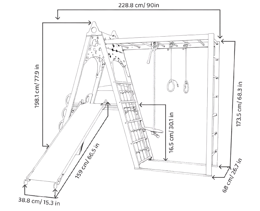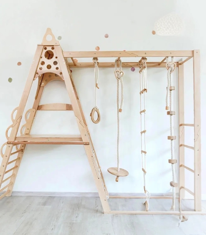 This versatile indoor climbing playground sparks imagination, promotes physical development, and ensures hours of fun. Crafted from natural wood, it complements any home with its minimalist and eco-friendly design.